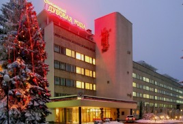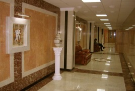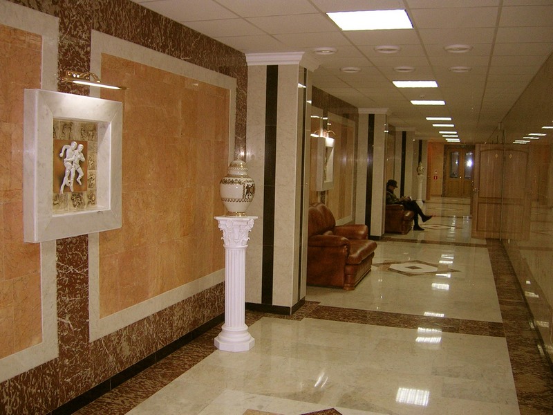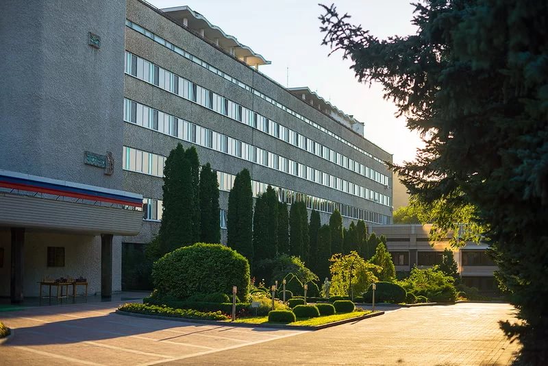 Центральный корпус : 5-этажный с лифтом; соединен теплым переходом со столовой, бассейном и лечебным отделением.