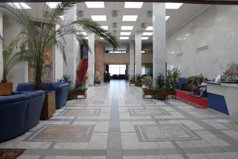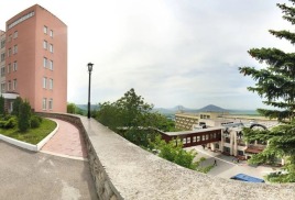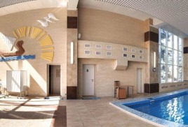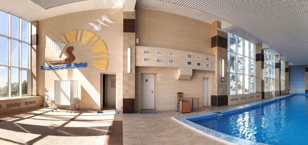 Размещение: Два 8-ми этажных спальных корпуса с лифтами, лечебно-диагностический корпус 5-ти этажный с лифтом и спортивно-оздоровительный корпус. Все соеденено в единый комплекс теплыми переходами.