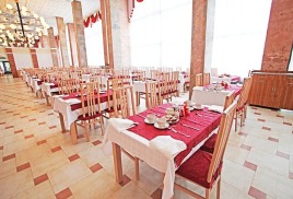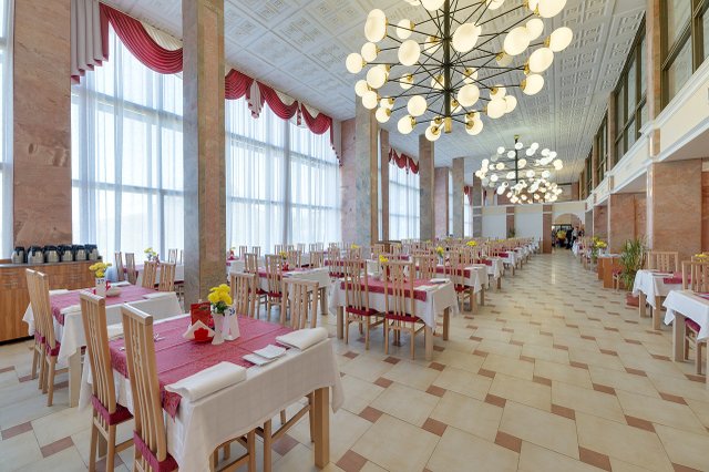 Питание: 3-х разовое «меню-заказ». Проживающие в номерах Апартаменты, питаются в отдельном зале.