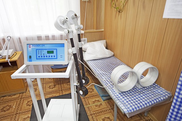 - Физиотерапевтические процедуры: КВЧ-терапия; лазерная терапия; ЛФК; магнитотерапия; подводный душ-масаж; физиотерапия; электролечение; светотерапия; электросон
