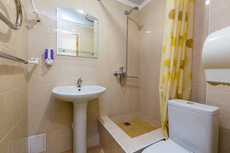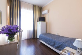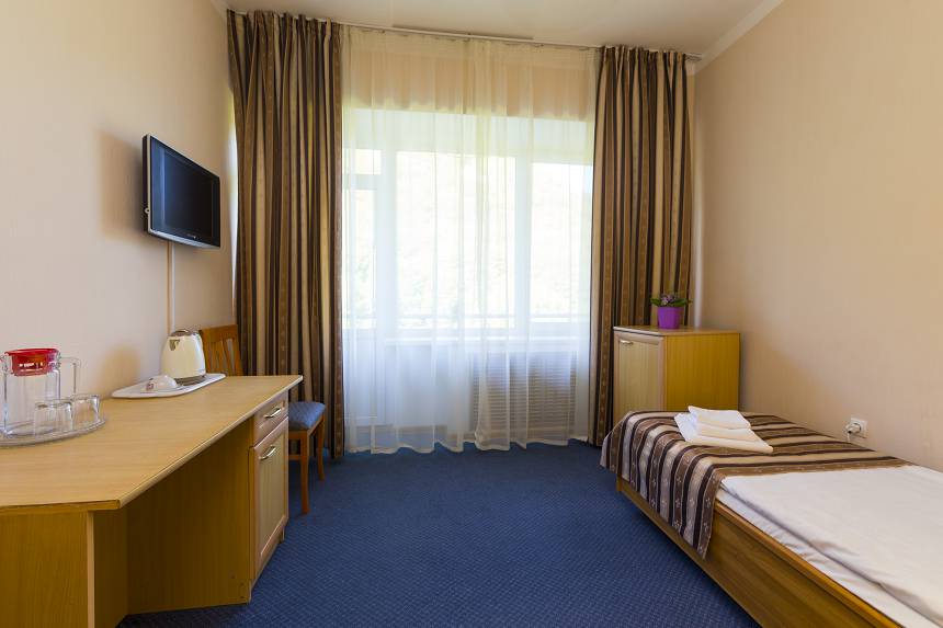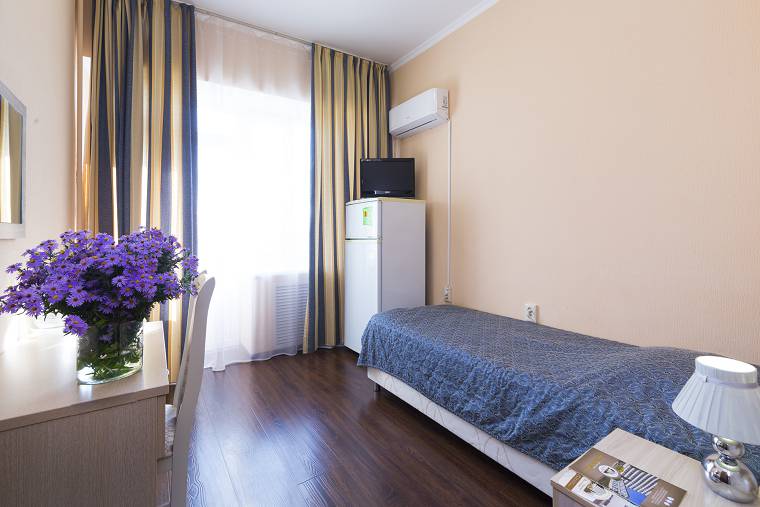 - 1-местный 3-категории. Площадь 8-12 кв.м. В номере: односпальная кровать, телевизор, холодильник, кондиционер, электрочайник, санузел с душем (без поддона).