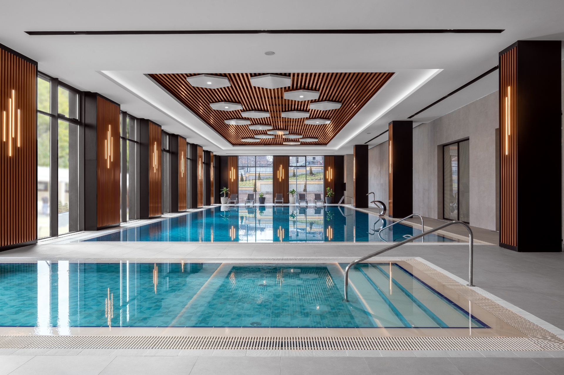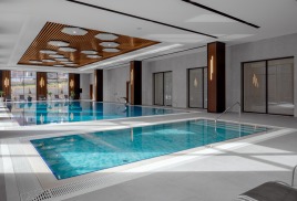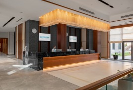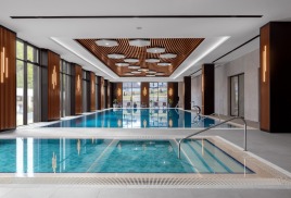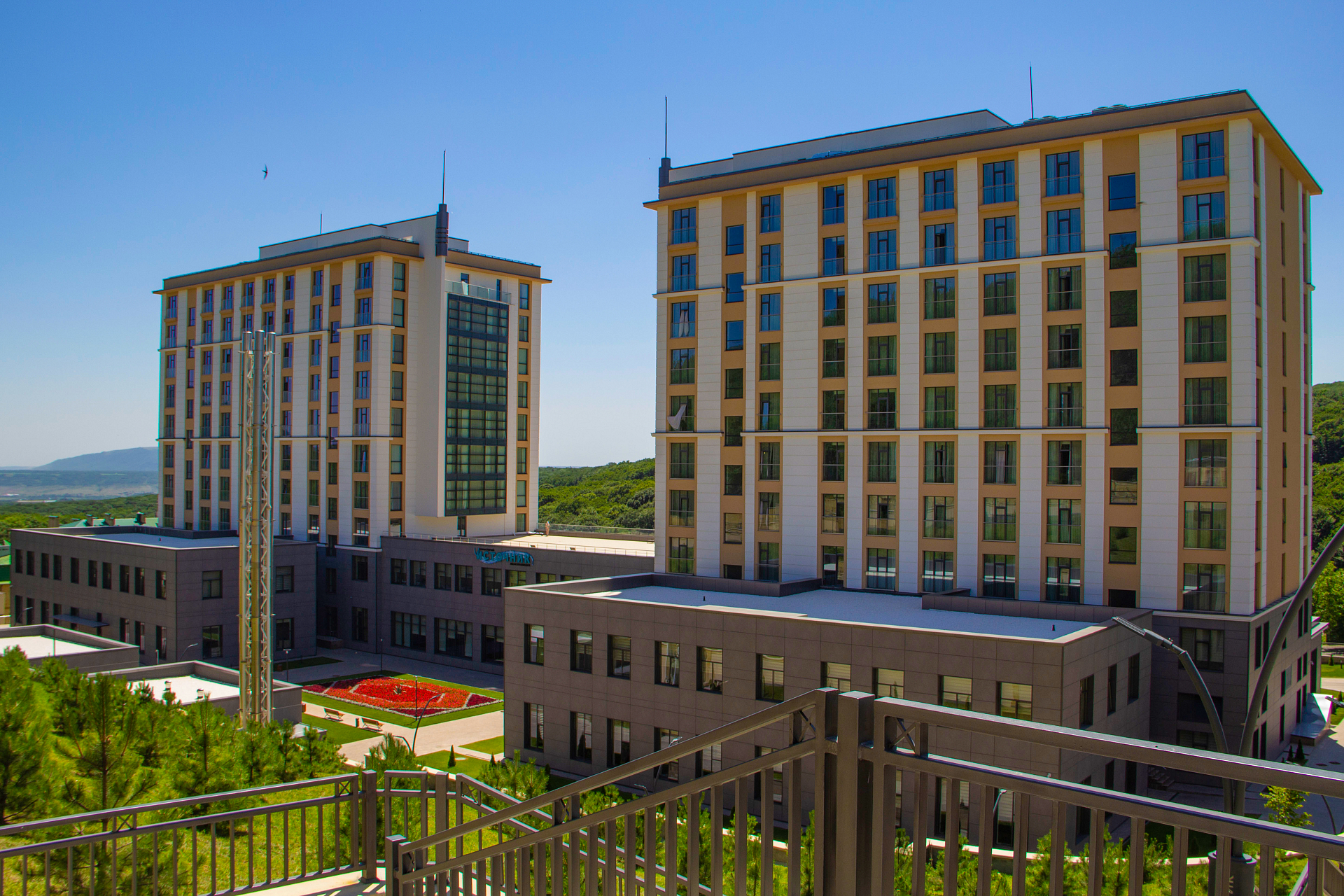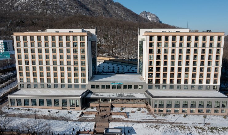 Размещение: два 10ти этажных корпуса с лифтами, соединены в общий комплекс со столовой, бассейном и лечебным отделением.