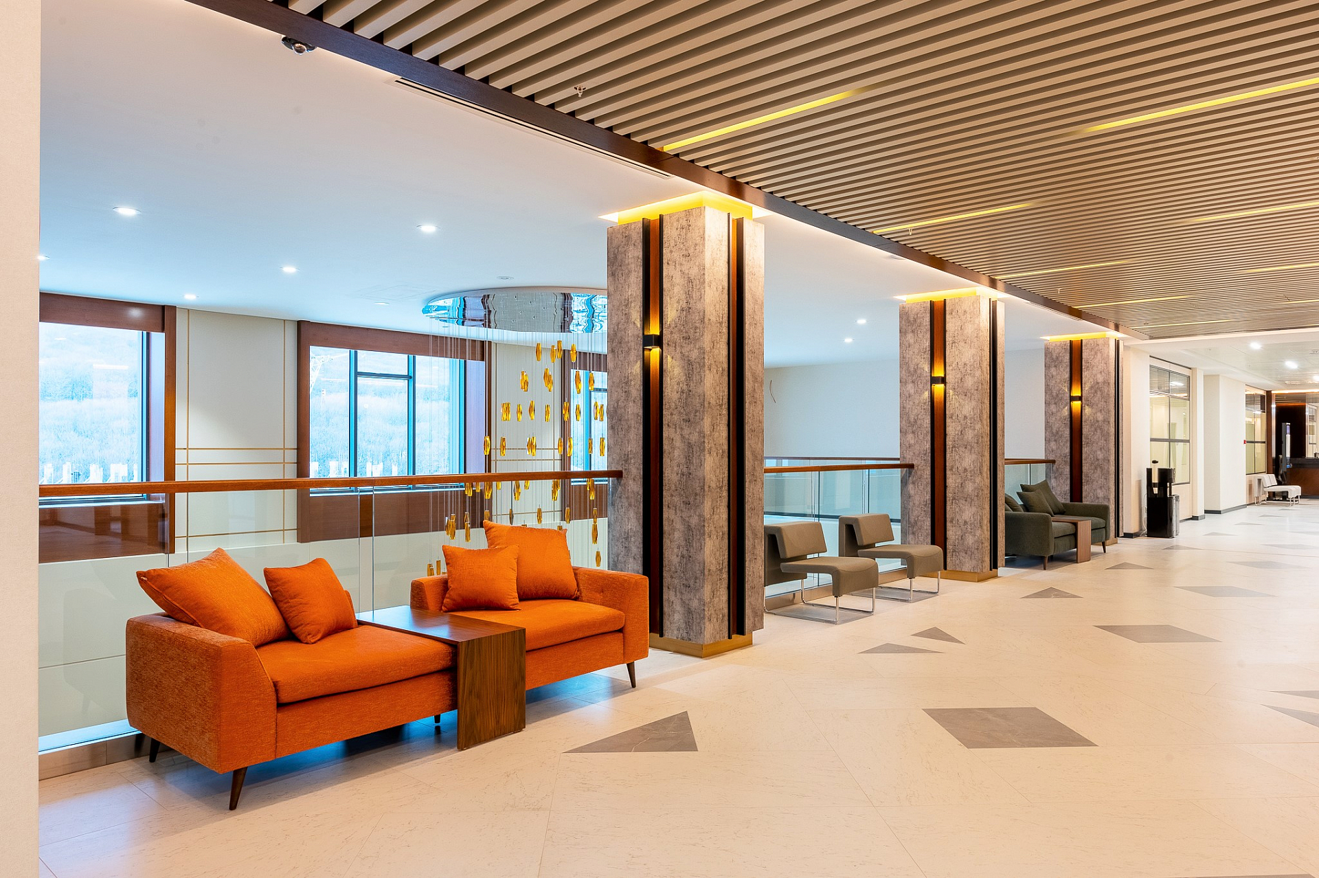 - 2-местный 1-комнатный Комфорт. Площадь 41 кв.м. В номере: одна двуспальная кровать, диван, ЖК телевизор, холодильник, мини-бар, система климат-контроль, сейф, электрический чайник, чайный набор, санузел с душевой кабиной, фен, халат, тапочки, гостиничная парфюмерия, французский балкон с видом на гору Железная.