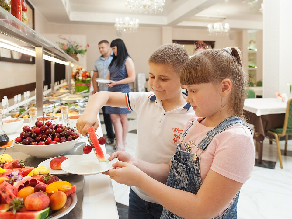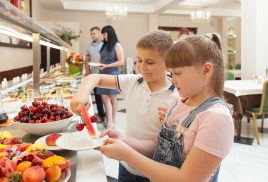 - ребенок до 1 года включительно может посещать шведский стол с родителями без доплат;